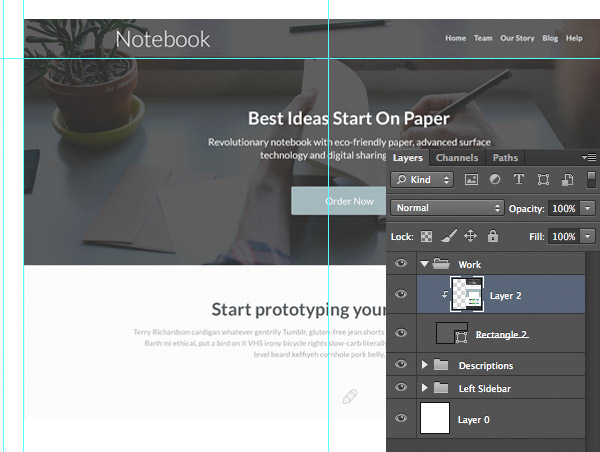 ساخت سه Layer Group به نام های Left Sidebarو Discription و Work