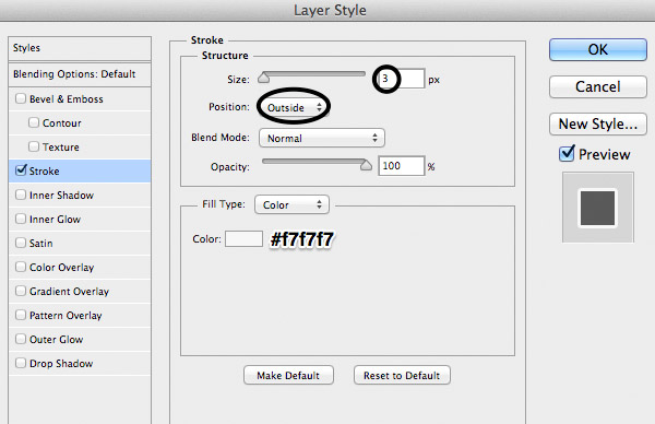 Blending Option را بر روی لایه دایره قرمز رنگ انتخاب کرده و روی Strock کلیک می کنیم و تنظیمات را مانند شکل زیر انجام می دهیم